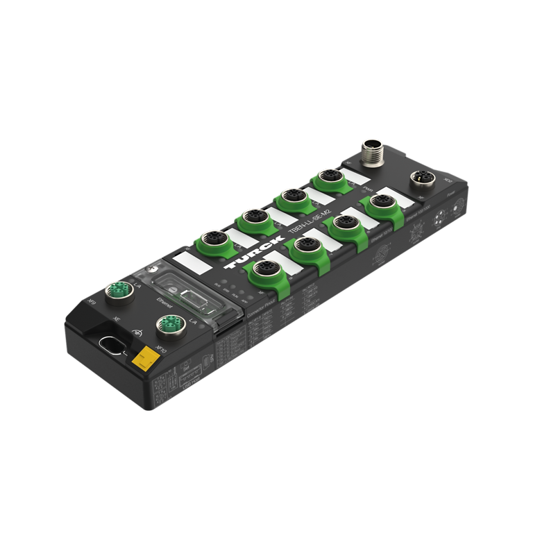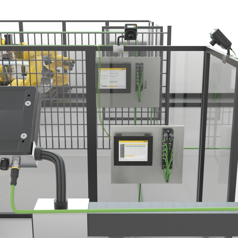 Der managebare IP67-Switch TBEN-L-SE-M2 optimiert die Datenkommunikation in Roboterschweißzellen. Dank Cut-through-Forwarding minimiert er Latenzen, sodass Kamerasysteme zur Roboterführung in Echtzeit eingesetzt werden können. Zwei GBit-Ports sorgen für eine schnelle Anbindung an die Steuerung und ein leistungsstarkes Backbone.