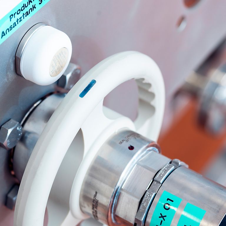 Die finale Drehradversion enthält drei im Abstand von 120° eingelassene RFID-Tags, deren Signale beim Eindrehen blitzschnell die Verbindung identifizieren und bei einem positiven Ergebnis den Durchfluss frei-geben. Für die Integration und Steuerung der Kupplungslösung nutzte Bachofen TURCKs RFID-System BL ident mit TBEN-I/O-Blockmodulen in Schutzart IP67/IP69K. Diese sind mit speziellen Schutzgehäusen auch zum Einsatz in ATEX-Zone 2 zugelassen, was bei Ethernet-I/O-Modulen eher selten der Fall ist. Die eingesetzten Schreib-Lese-Köpfe können ebenfalls in Zone 2 genutzt werden, der TN-R42TC-EX sogar in Zone 1. Dank der Multiprotokollfähigkeit der TBEN-Module können diese in jedem industriellen Ethernet-Netzwerk mit Profinet, Ethernet/IP oder Modbus TCP eingesetzt werden. Zur Kommunikation mit dem übergelagerten Produktionssystem nutzt B. Braun Medical OPC UA.
