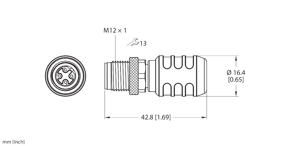 Male, M12 × 1, Straight, B-coded
