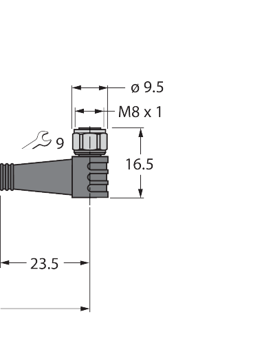 Female, M8 × 1, Angled