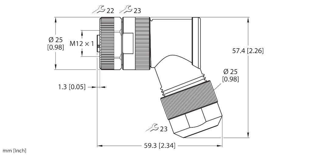 Female, M12 × 1, Angled, K-coded