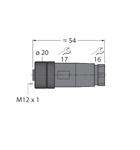 Female, M12 × 1, Straight