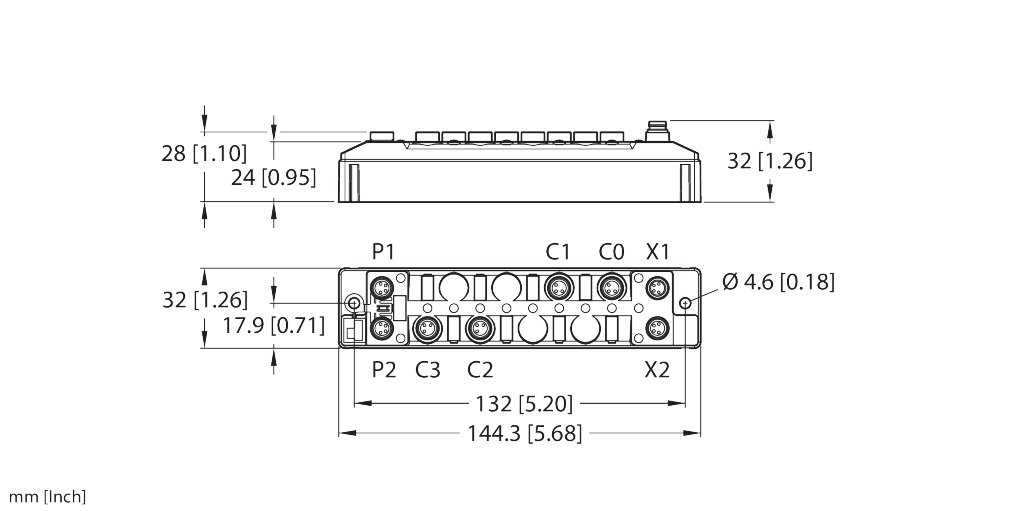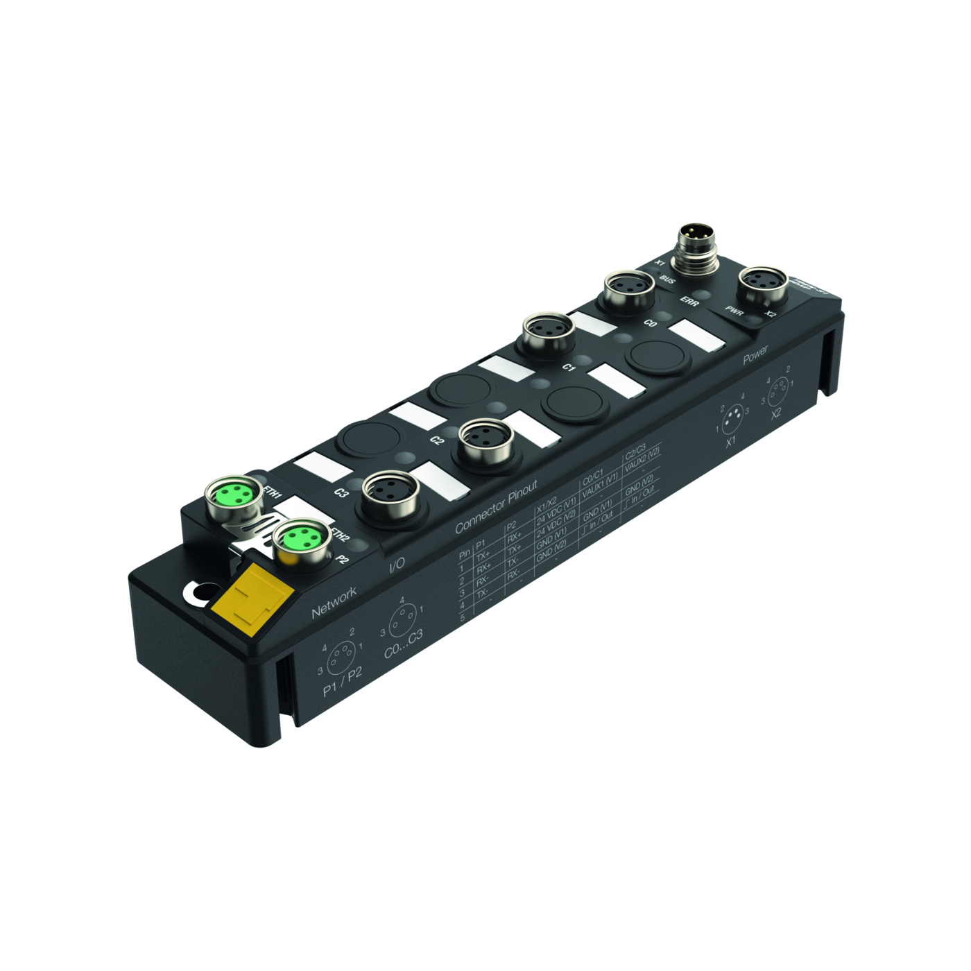 - 2 × M8, 4-pin, A-coded