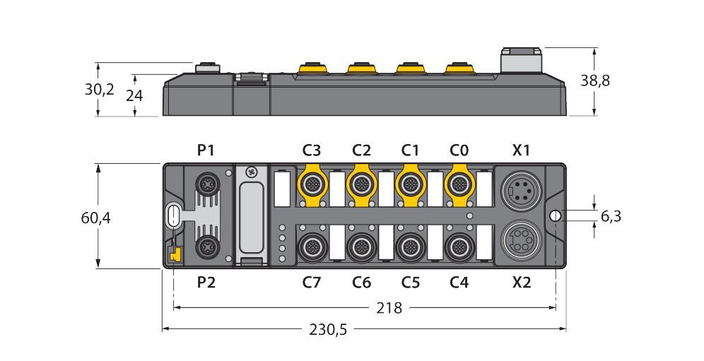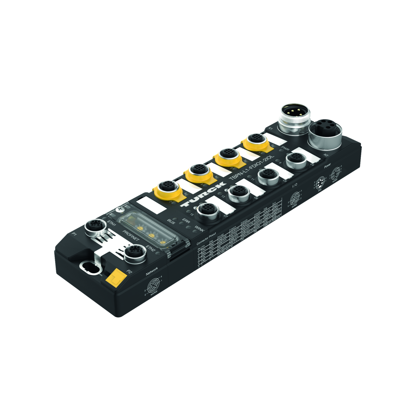 - 2 × M12, 4-pin, D-coded