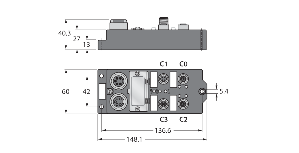 148,1 mm x 60,4 mm x 27 mm