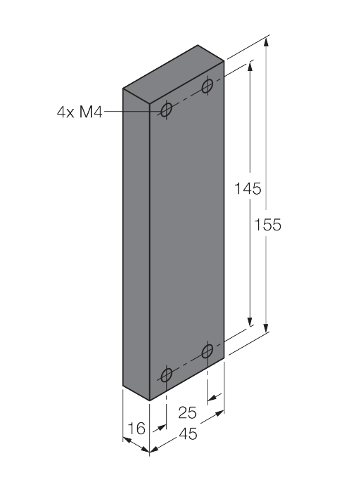 155 mm x 45 mm x 16 mm