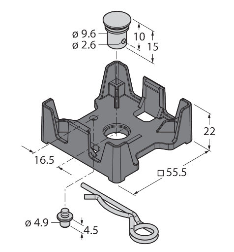 55,5 mm x 55,5 mm x 22 mm
