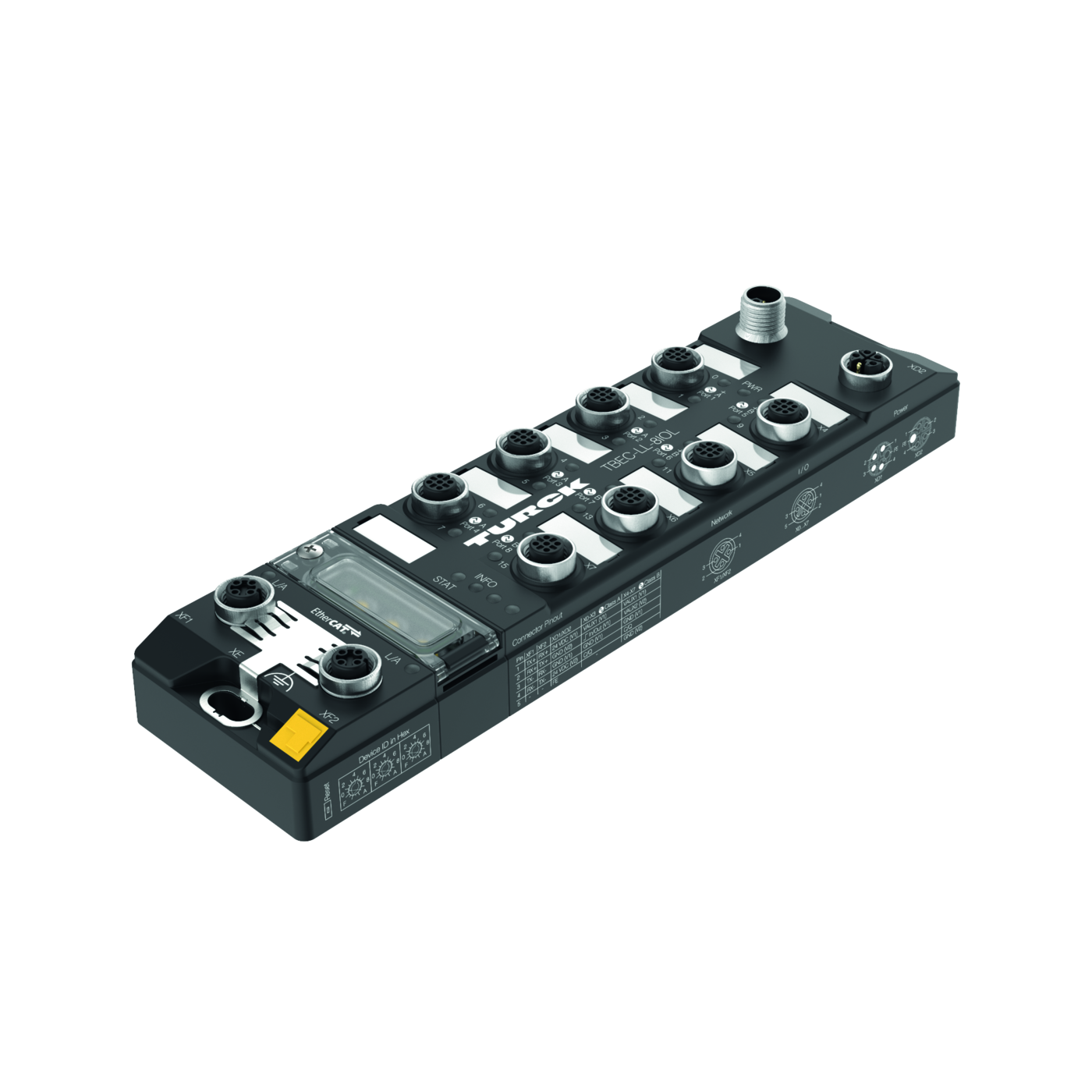 - 2 x M12, 4-pin, D-coded