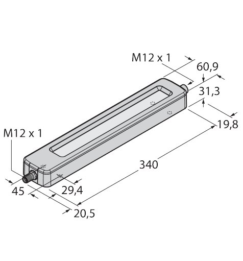 375,1 mm x 60,9 mm x 31,3 mm