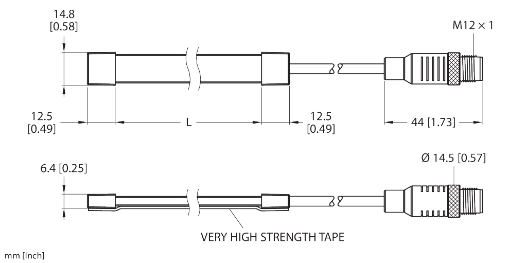 1225 mm x 12,8 mm x 6,4 mm