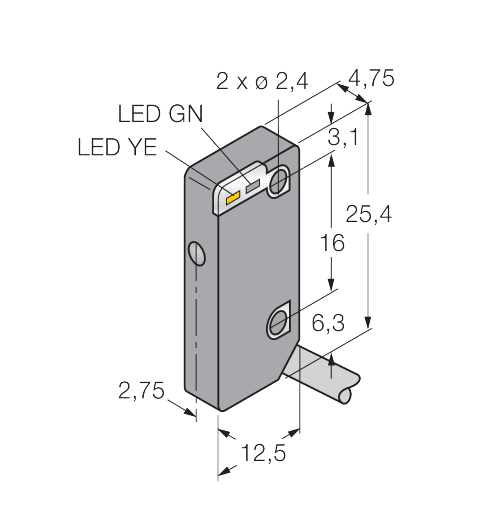 12,5 mm x 4,75 mm x 25,4 mm