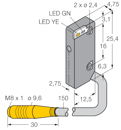 12,5 mm x 4,75 mm x 25,4 mm