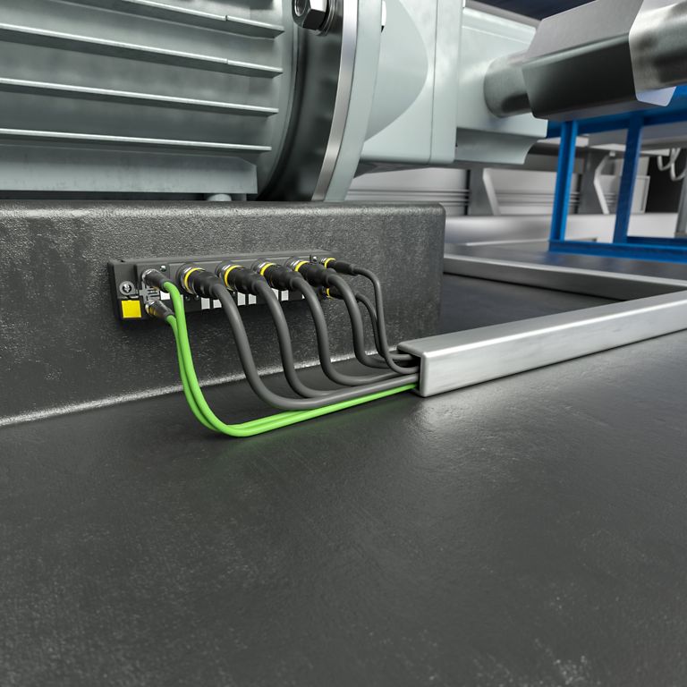 Thanks to multi-protocol technology, TBEN-S-2COM communicates simultaneously with controllers, HMIs or cloud applications. Motor control remains prioritized, while vibration data is transmitted with lower priority, ensuring reliable data transmission.