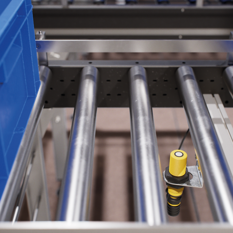 Sensors on roller conveyors must precisely detect containers to efficiently control material flow in production facilities. Optical sensors reach their limits in poor lighting conditions, with contamination or on reflective surfaces. A reliable object detection solution is essential to ensure smooth operation, save energy and reduce wear.