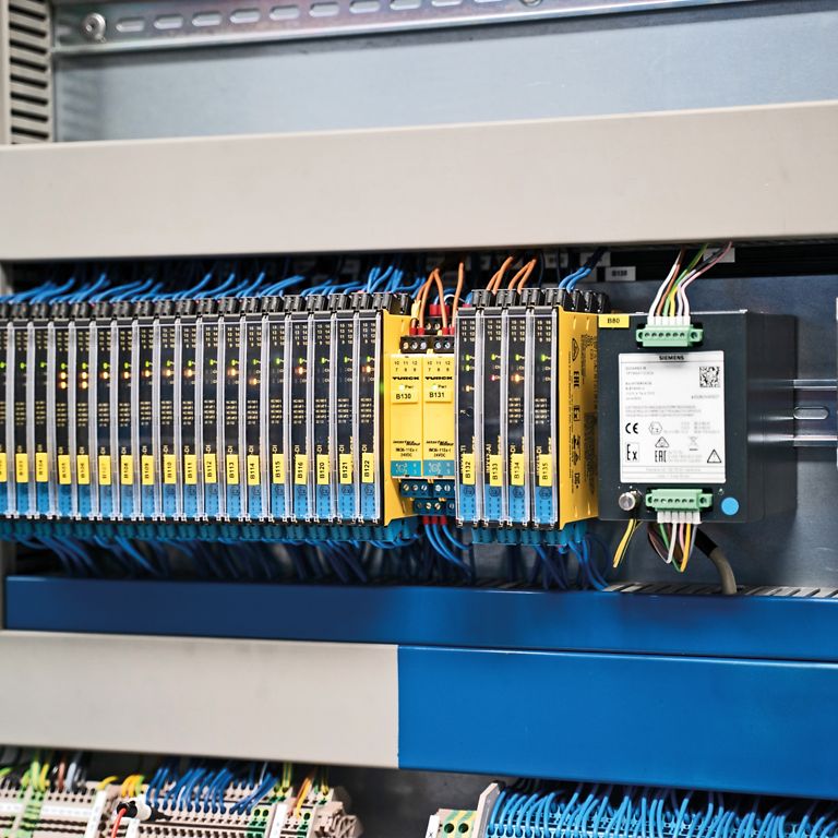 However, not every company has PLC programming expertise and in some cases a fieldbus is simply not needed. In those situations, Niemann uses a second approach based on hardwiring rather than PLC technology. Pushbutton signals are sent to the field via TURCK IMX12 isolating switching amplifiers. Devices from the IMX12 interface series are also used when operators need to bring specific digital or analog values out of the hazardous area. This allows proximity sensor signals or temperature values to be transmitted in an intrinsically safe manner to the control cabinet.